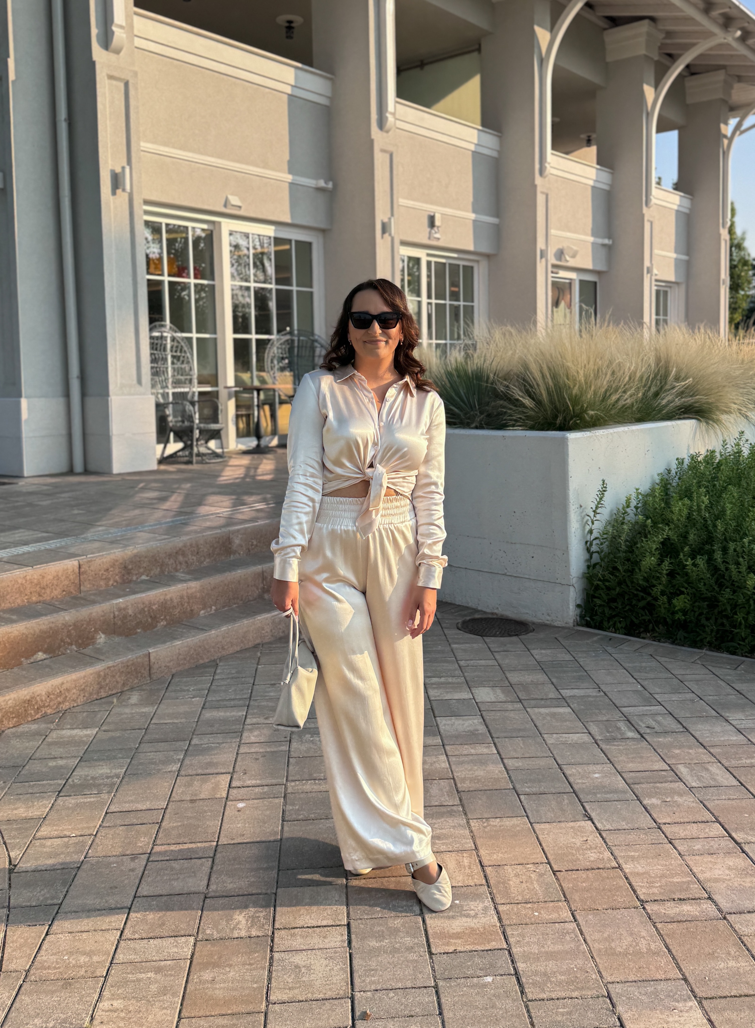 Koszula z kołnierzem oraz z długim rękawem. Można nosić w klasycznej formie lub związaną, tak jak pokazujemy na zdjęciach.