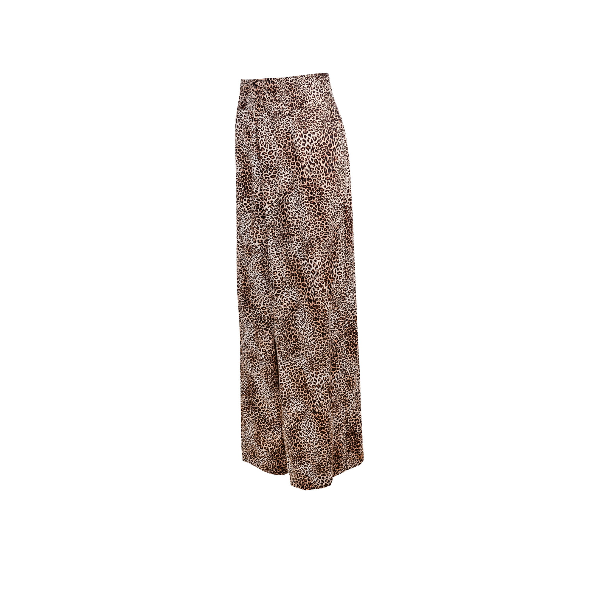 Niebanalne spodnie kuloty z wysokim stanem z kieszeniami w szwie bocznym. Wykonane z wysokogatunkowej cienkiej tkaniny wiskozowej. Spodnie talii zostały wykończone szeroką gumą przeszytą po wierzchu.