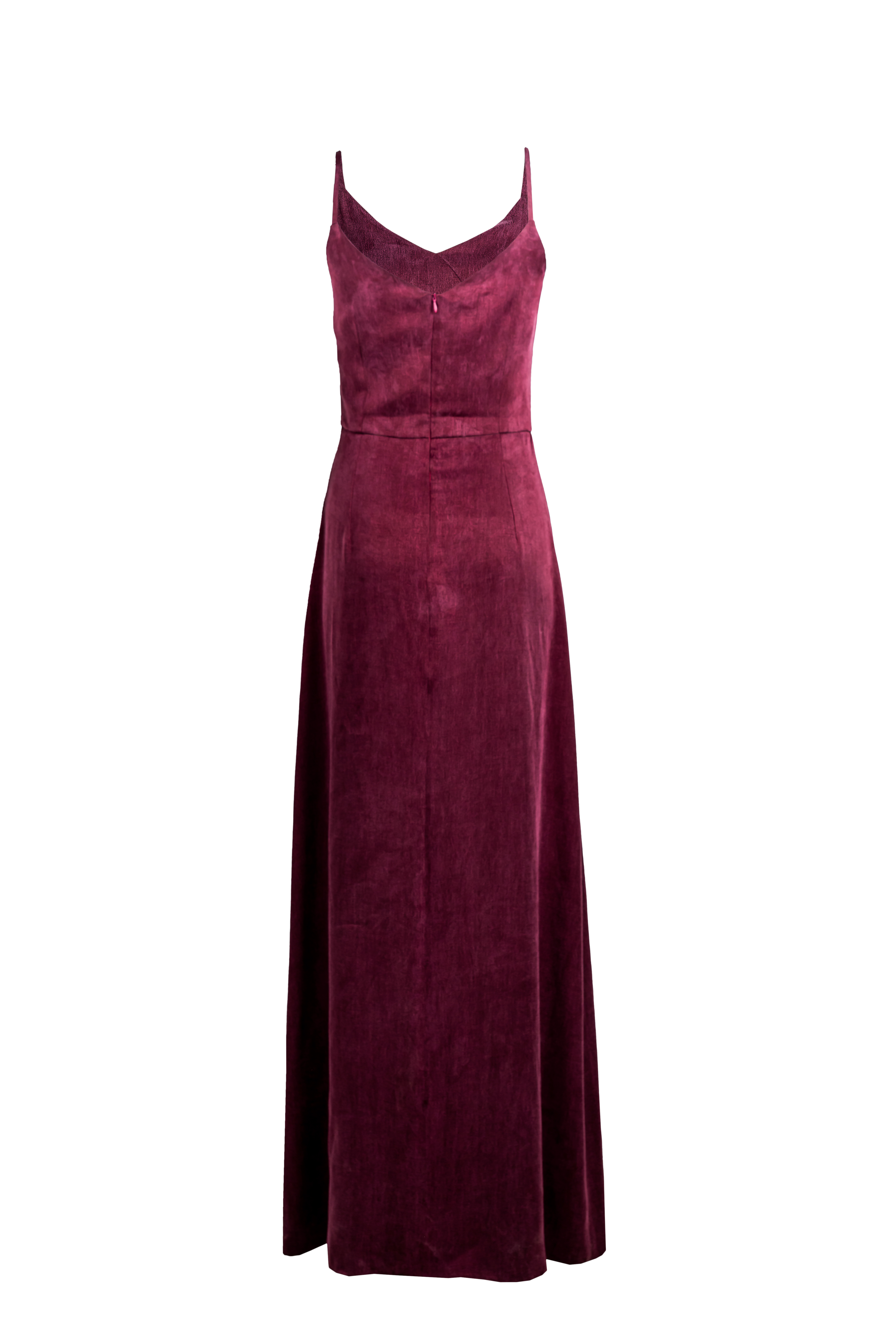 Przepiękna sukienka maxi z głębokim rozcięciem na nodze.
